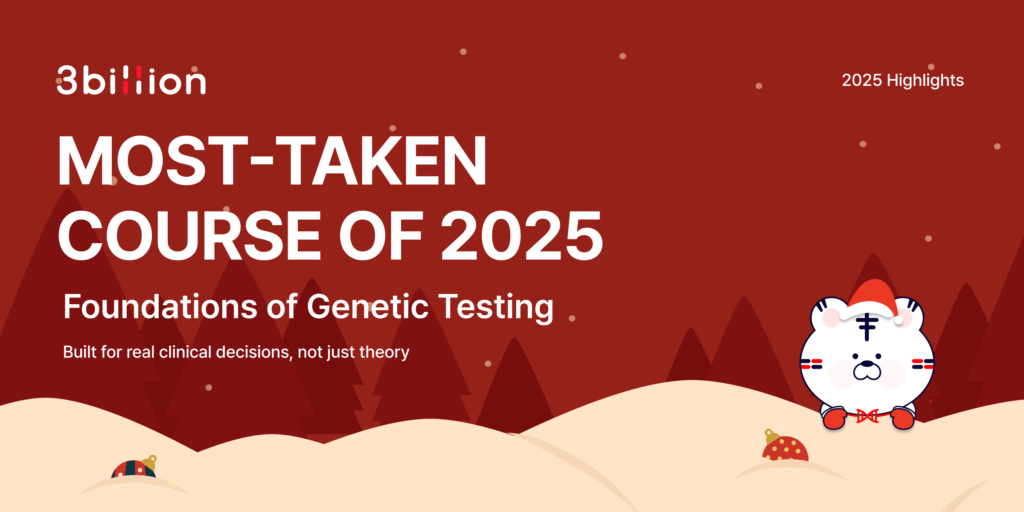 Among 3billion’s educational offerings, Foundations of Genetic Testing emerged as the most widely chosen learning experience of the year. Its strong engagement reflects a growing need for clear, practical guidance on when to order genetic testing, how to interpret results, and how to communicate findings to patients and families.
