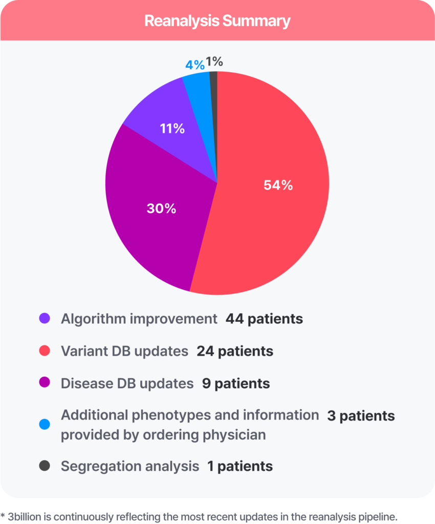 It continues as the knowledge base grows— and 3billion’s automated reanalysis system ensures patients benefit from that progress.