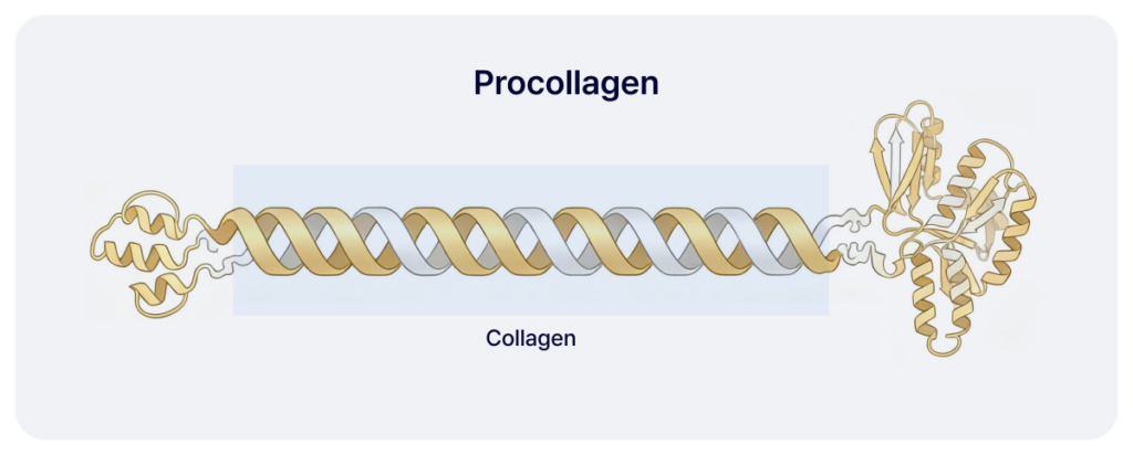 This repetitive structure is essential for the formation of a stable collagen triple helix. Subsequently, the N- and C-terminal propeptides are removed from the procollagen through proteolytic cleavage, resulting in the formation of mature collagen molecules.