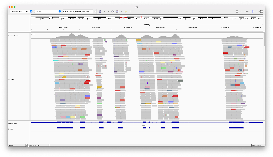 Currently, it is not possible to read the genome from position 1 to the end all at once, but the genome is cut into short pieces of about 400 bp and both ends are read with a length of about 150 bp. These are called FASTQ files. [Figure 1] These FASTQ files are then reassembled into long sequences by aligning them with the reference sequence. These files are called BAMs. [Figure 2] Then, out of the 3 billion positions in the genome, a position called a variant that is different from the reference sequence can be found. [Figure 3] Here, reading all 3 billion bases of the genome is called WGS (Whole Genome Sequencing), reading all protein-coding exons is called WES (Whole Exome Sequencing), and reading only specific gene positions is called Target Sequencing. When sequencing only a specific region, the variant calling process only covers mutations in that specific region. Files that refer to these specific areas are called BED files. [Figure 4] There are about 5 million mutations per person in the WGS VCF file, which is about 0.16% of the total 3 billion bp. Although it is called the same mutation, there are mutations that are visible on the outside and have no problems, such as human skin or hair color, while some mutations can cause diseases and make it difficult to live.