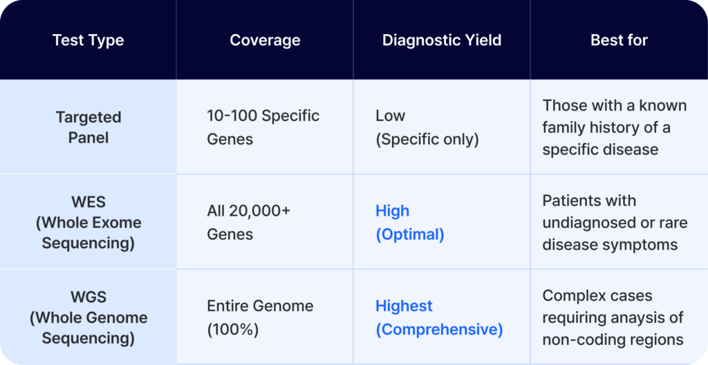 Before looking at the price tag, it is crucial to understand what you are paying for. The “Diagnostic Yield”—the likelihood of finding a definitive answer—is the most important factor in genomic testing.