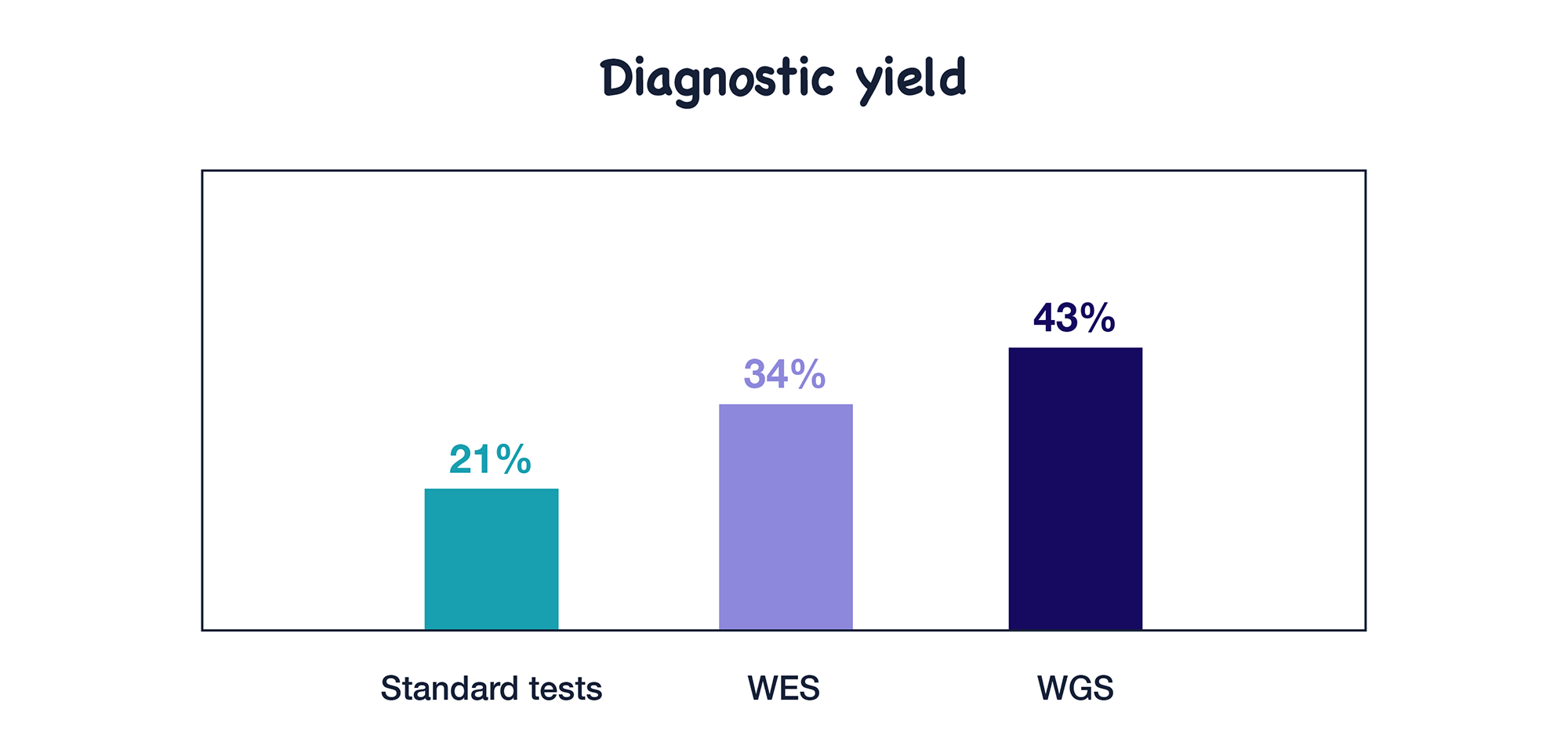 Although diagnostic yield is not the focus of this guideline, it is one of the most important aspects for patients and their families. After reviewing studies comparing diagnosis with standard tests versus ES/GS, ACMG found that ES/GS showed higher diagnostic yield than standard tests.