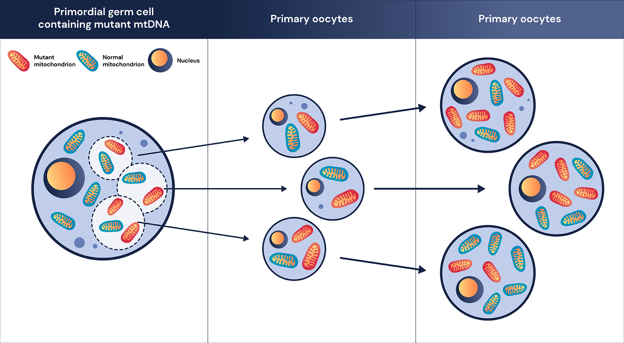 Second, during mitosis, all nuclear DNAs are divided equally between two daughter cells. Therefore, each of the daughter cells maintains its variant zygosity after division1. However, mtDNA does not follow the same replication during cell division as mtDNAs are distributed randomly during cell division 6, 9. This creates situations where heteroplasmic alleles can shift in percentage during cell division. This phenomenon is called replicative segregation and can also happen during meiosis 1, 9. Therefore, even within the same individual, depending on the tissue and cell type, a different percentage of a heteroplasmic allele can present. Patients’ symptoms can also change as a result of replicative segregation as the heteroplasmic allele percentage of the pathogenic variant could be different throughout the body 6-9. Together with polyploidy, mitochondrial replicative segregation brings unique challenges to the interpretation of mitochondrial variants.