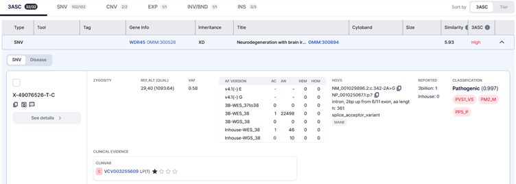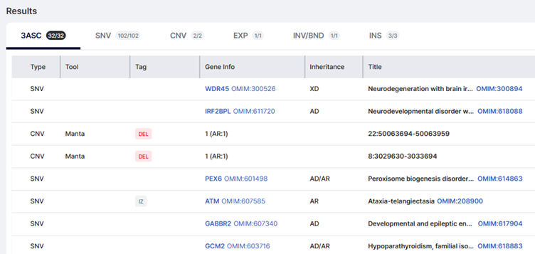 When you open the 3ASC tab in GEBRA, variants are automatically organized into three intuitive tiers.