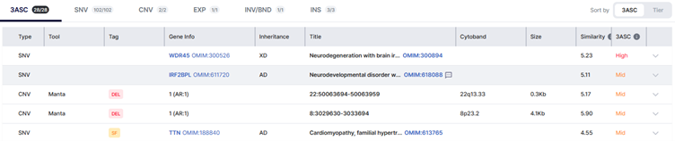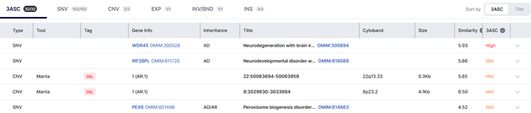 - 3ASC immediately reprioritizes variants based on the updated phenotype. No new upload. No manual rebuild of filters. Results refresh in seconds—right in your 3ASC view.