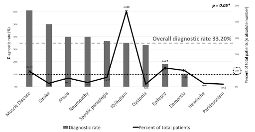 According to the results of a neurological disorder diagnosis study, the average diagnosis rate of the NGS diagnostic test is 33.20%, but the diagnosis rate can vary greatly from 10% to 60% depending on the phenotype.5 Diagnostic yield was found to be significantly affected depending on which patient groups the diagnostic company has analyzed. For example, if a diagnostics company undertakes a large national project for a patient population with a relatively high diagnostic rate, the average diagnostic yield will rise accordingly.