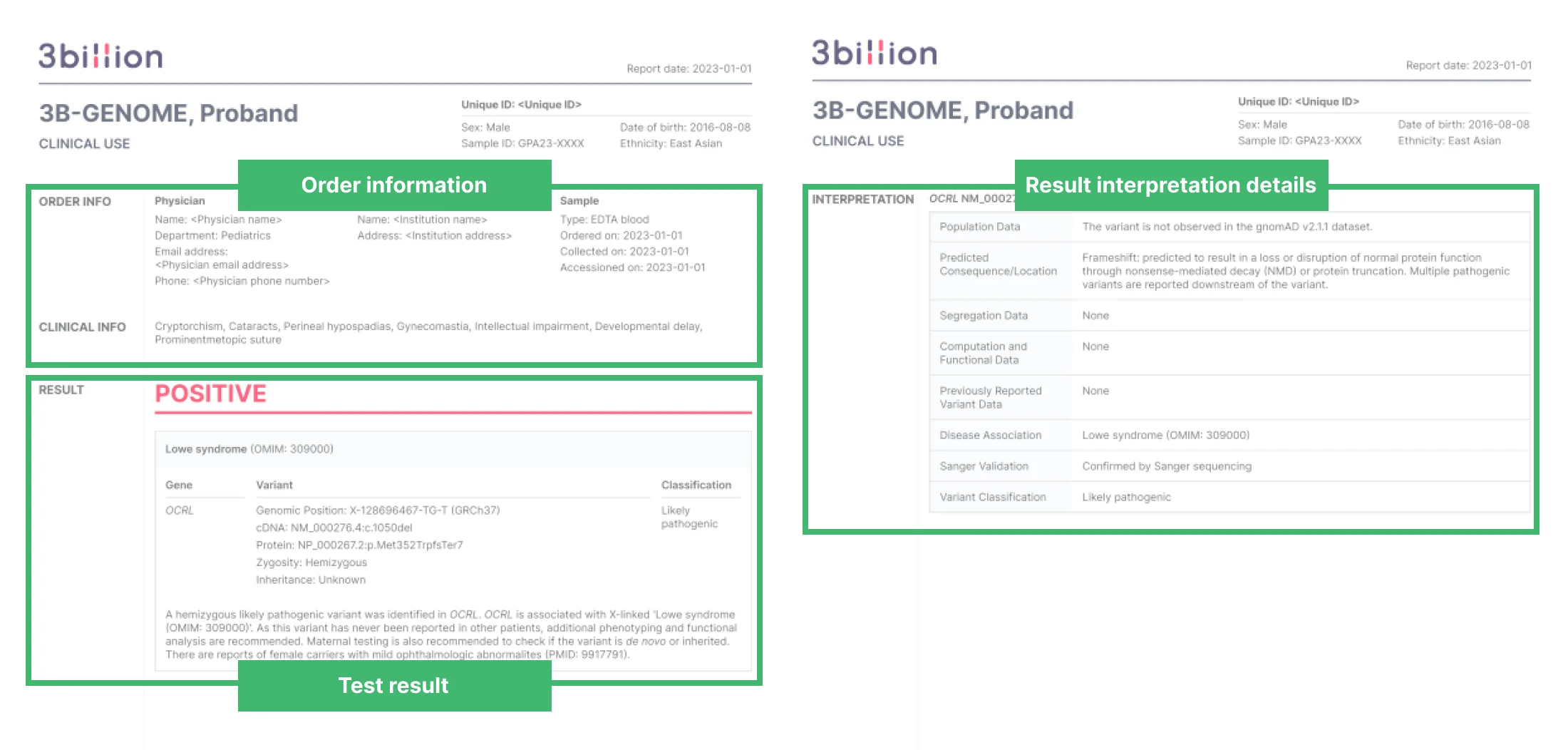 Hopefully this will help you interpret clinical genetic test reports and more easily identify the essential information needed for your research or treatment of your patients, or use it as reference when delivering the test results to patients and their parents.