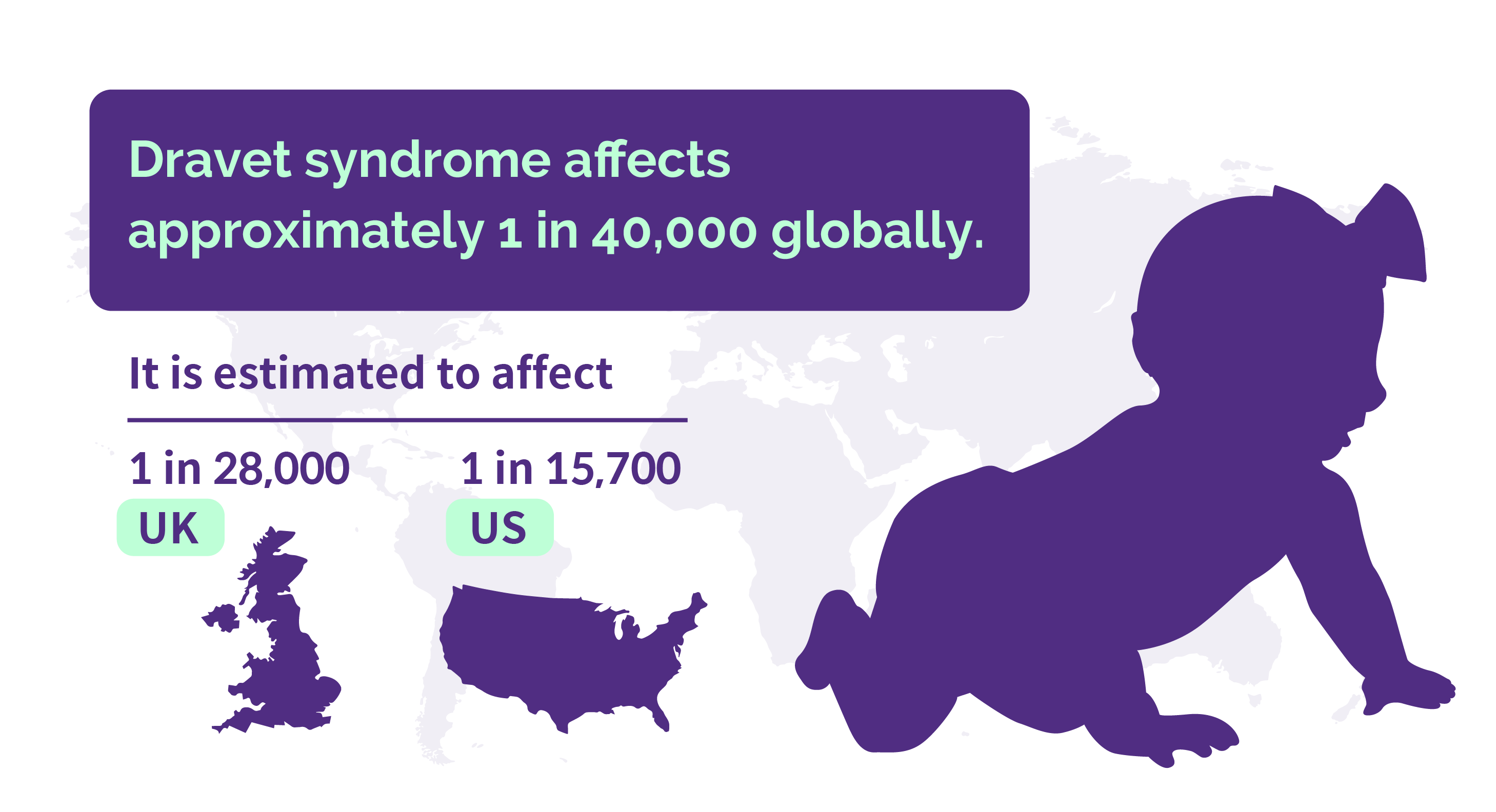 Dravet syndrome affects approximately 1 in 40,000 globally. It is estimated to affect 1 in 28,000 individuals in the UK and 1 in 15,700 in the US.