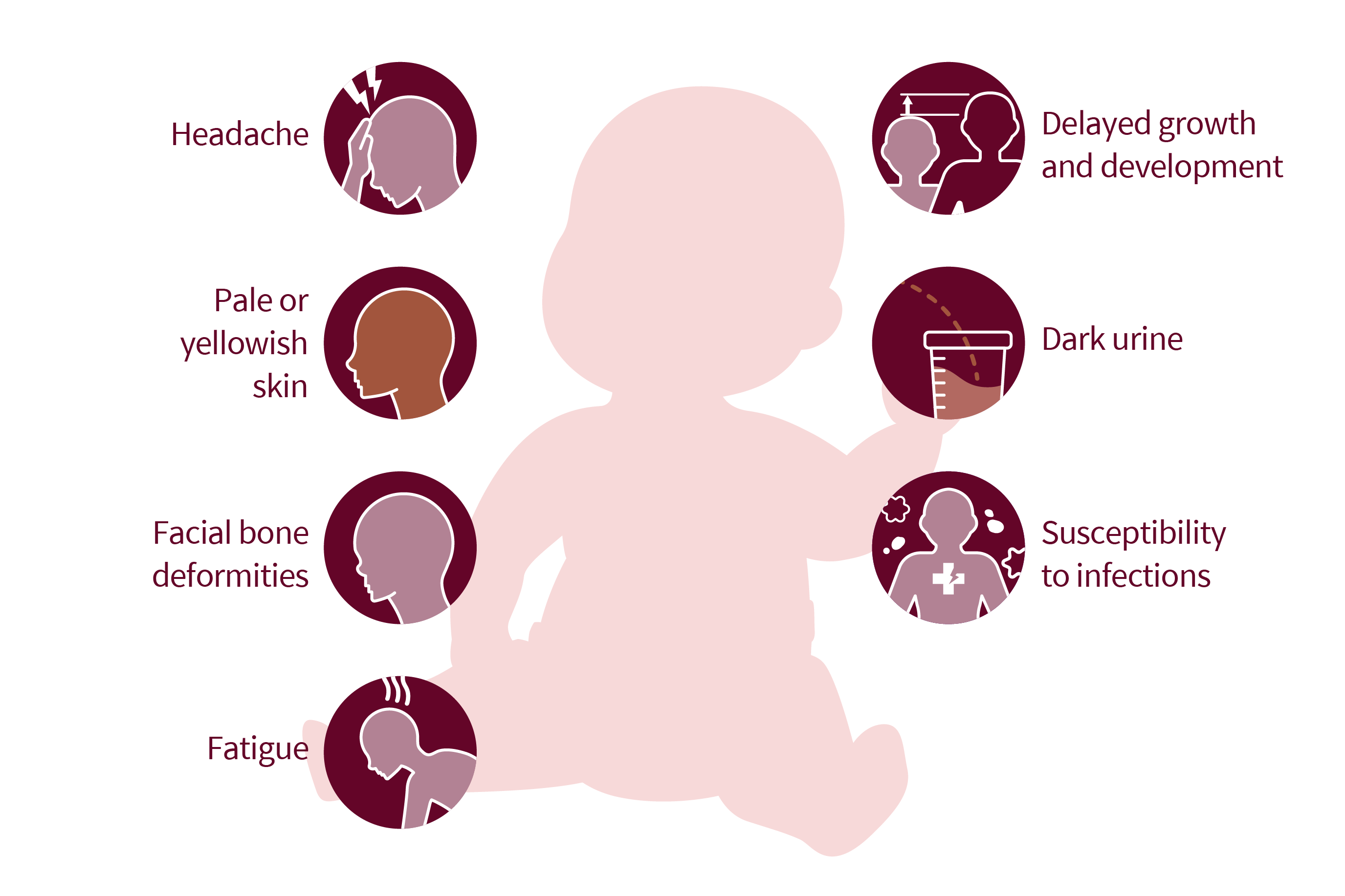 Symptoms are usually present from 6 months onward in most infants with beta thalassemia and some types of alpha thalassemia. The most severe case of alpha thalassemia causes stillbirth, or the death of the unborn baby during the late stages of pregnancy or birth. Children with beta thalassemia are do not present symptoms at birth, but develop severe anemia within one year.