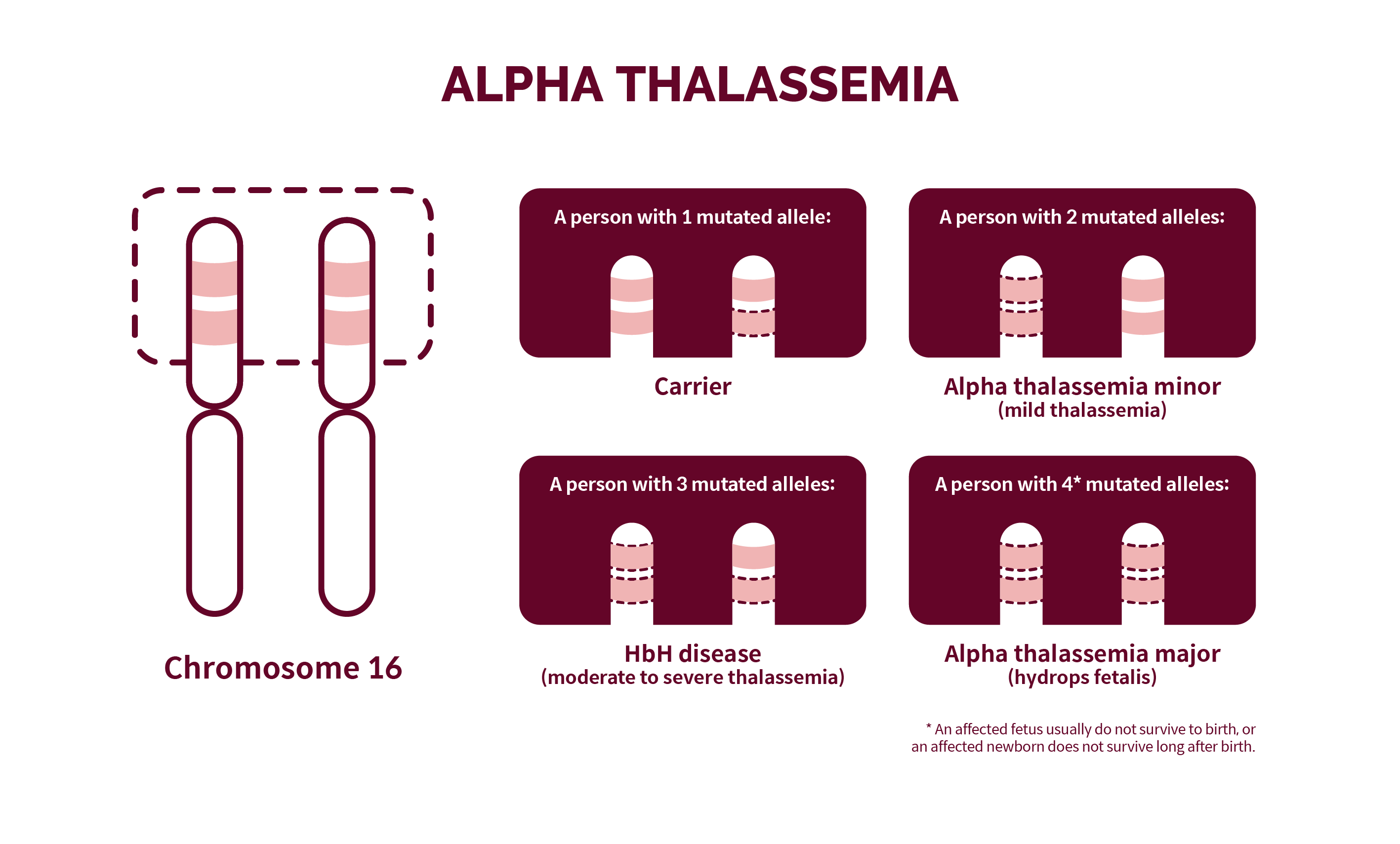 The inheritance pattern of alpha thalassemia is complex. The severity depends on the number of mutated genes.