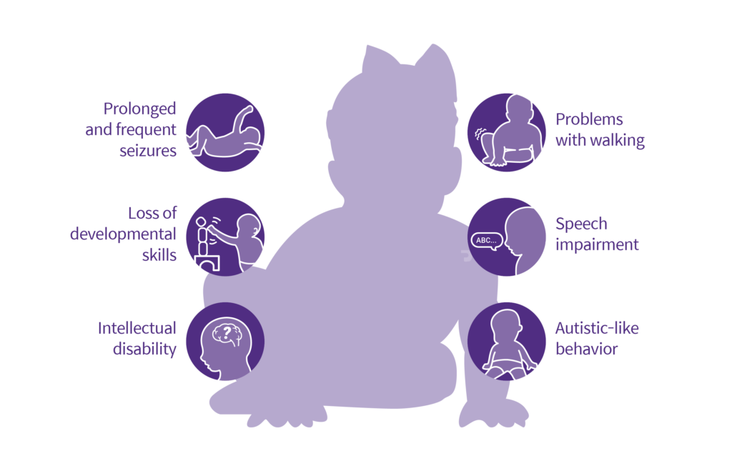 - Development: Initial normal development, followed by a noticeable plateau in motor and cognitive milestones after the onset of seizures.