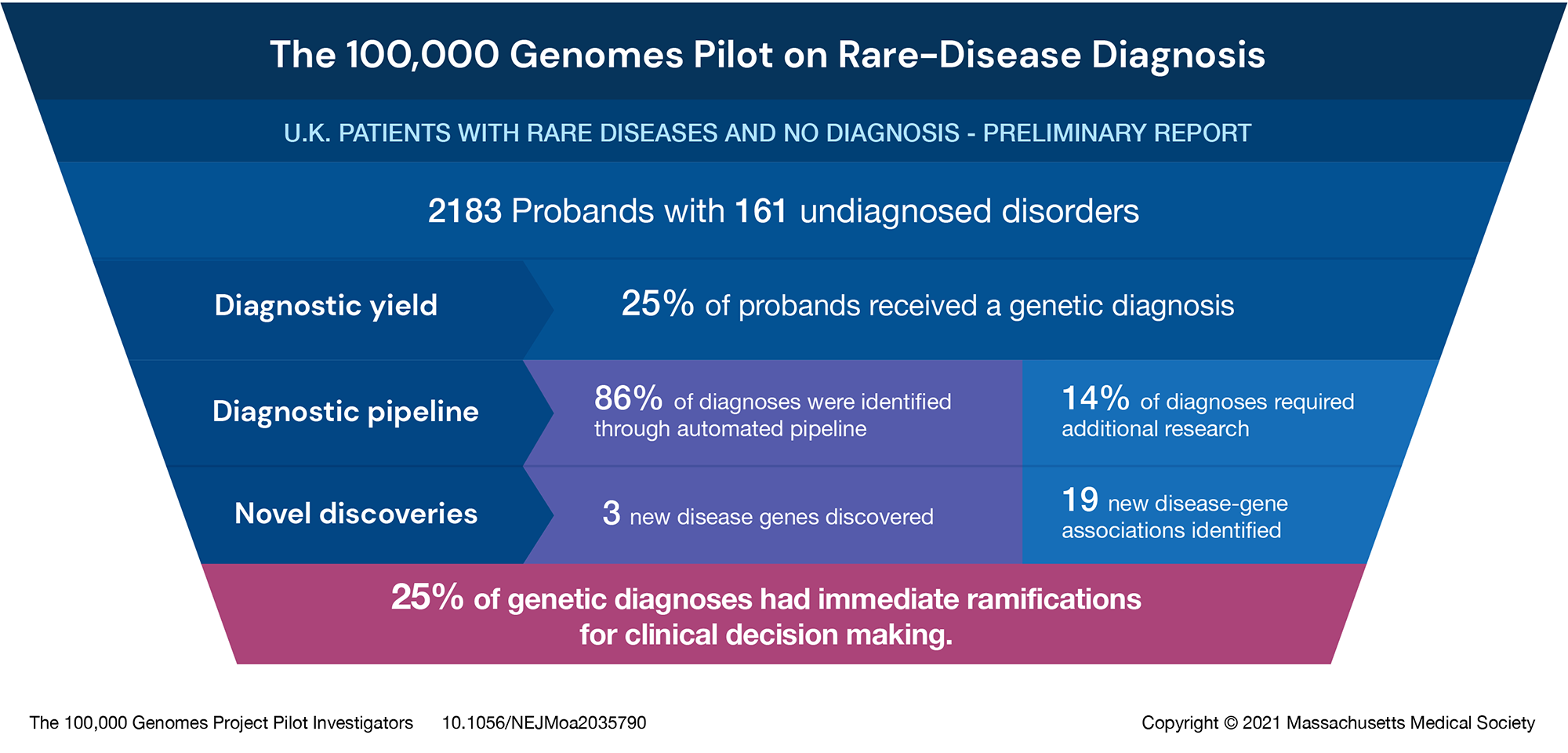 - The 100,000 Genomes Project Pilot Investigators. 100,000 Genomes Pilot on Rare-Disease Diagnosis in Health Care — Preliminary Report. N Engl J Med. 2021; 385:1868-1880