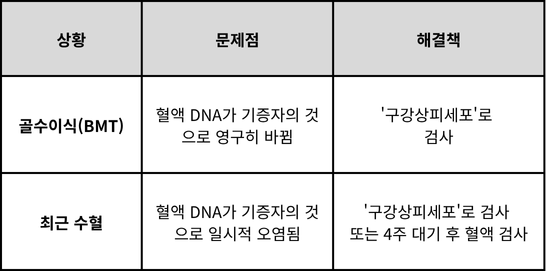 골수이식과 수혈 환자는 왜 혈액으로 검사가 불가능한가요?