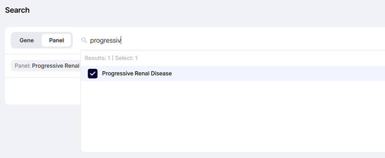 - 패널 이름, 설명, 후보 유전자 입력