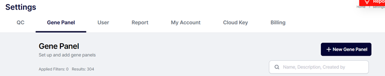 기본 패널 외에도, 연구자 혹은 임상의는 + New Gene Panel 버튼을 눌러 자신만의 유전자 리스트를 직접 생성할 수 있습니다.