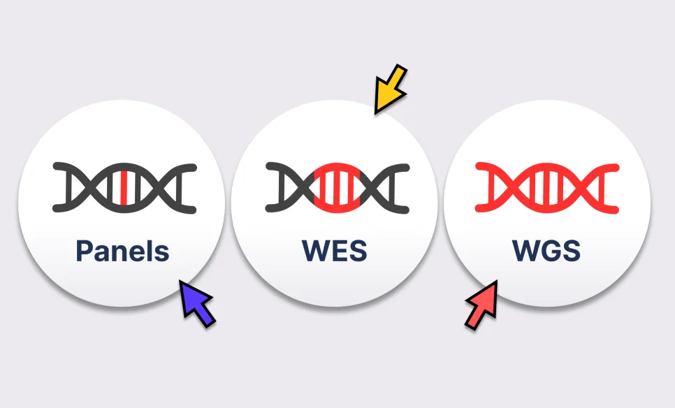 넓은 범위를 염기서열하면 진단율이 높은 반면, 현재까지의 기술로는 염기서열의 깊이(depth of coverage)가 상대적으로 낮으며 분석하는 유전자 수가 많아 의미가 불명확한 변이(VOUS)가 많이 검출되어 해석이 어려울 수 있어요.