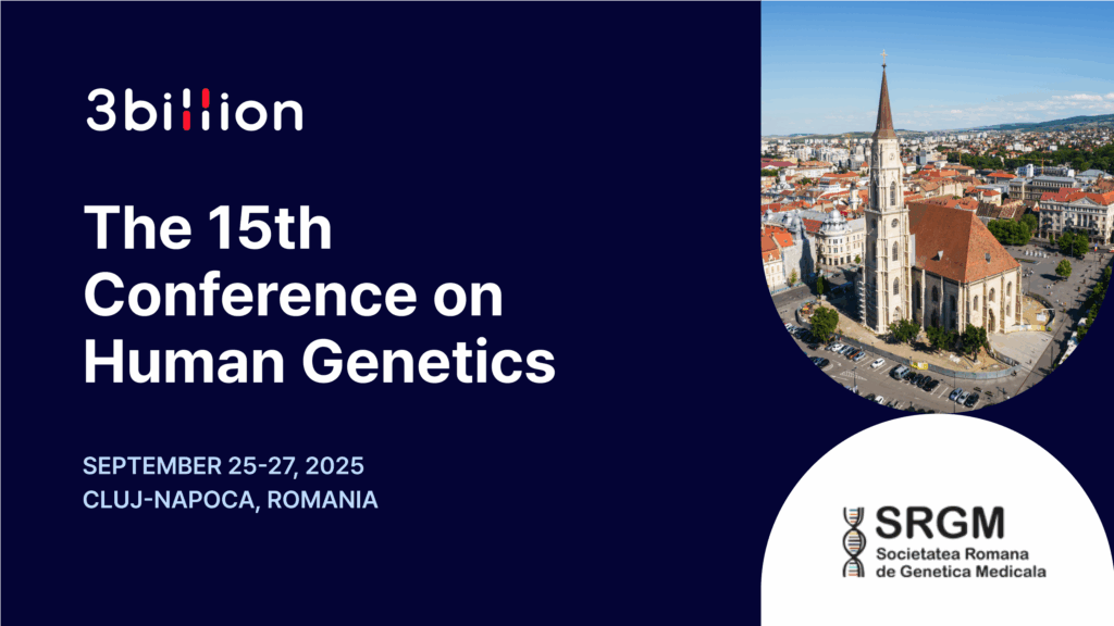 쓰리빌리언은 오는 2025년 9월 25일부터 27일까지 루마니아 클루지나포카(Cluj-Napoca)에서 개최되는 ‘The 15th Conference on Human Genetics‘ 행사에 참가합니다.