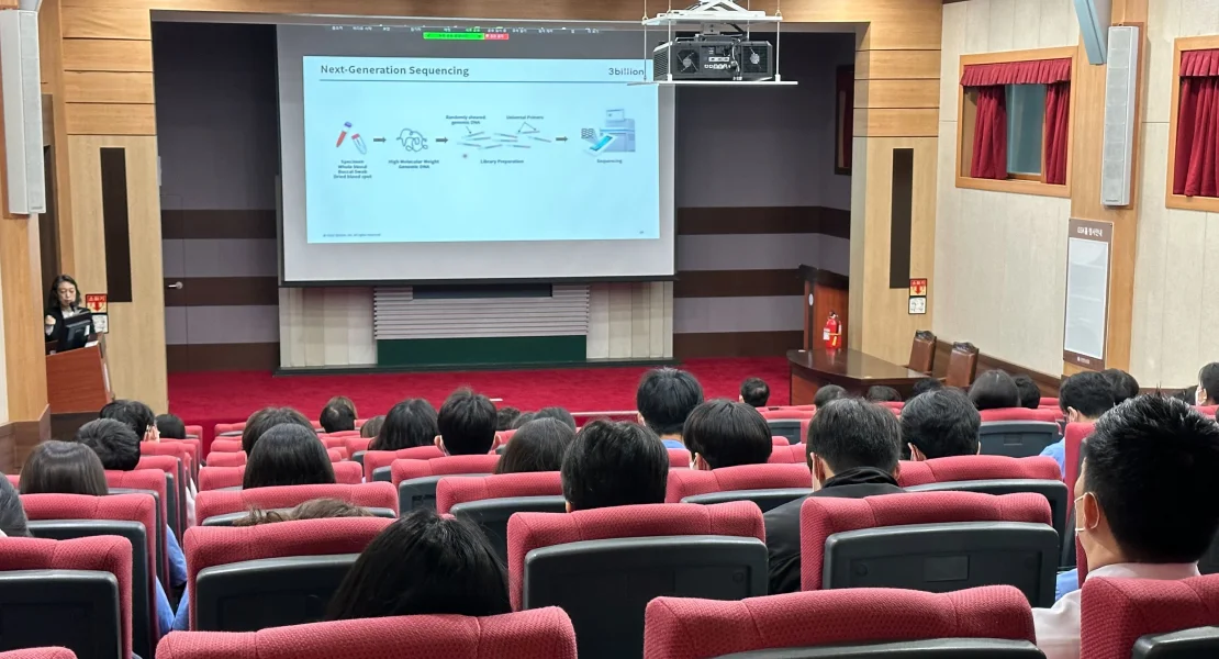 쓰리빌리언의 이해인 이사(Chief Genomics Officer)가 5월 3일 전북대학교 내과 그랜드라운드(MGR)에서 희귀질환 검사를 위한 유전자 검사를 주제로 발표를 진행했습니다.