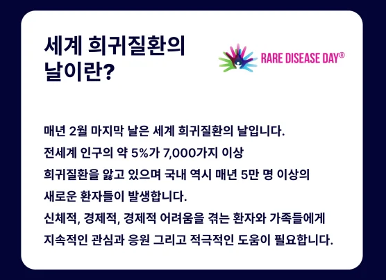 매년 2월의 마지막 날은 ‘세계 희귀질환의 날’입니다. 4년에 한 번 돌아오는 2월 29일에 착안하여 유럽희귀질환기구(EURODIS)가 지정한 날이에요.