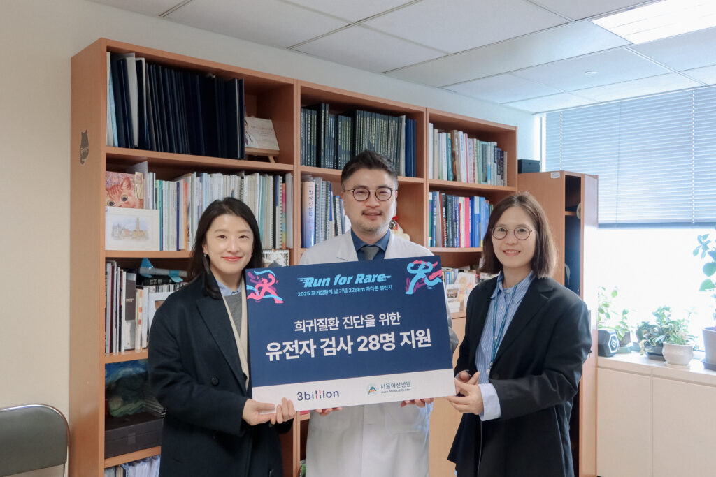 쓰리빌리언은 앞으로도 다양한 기관들과 함께 협력하며, 더 많은 희귀질환 환자들에게 더욱 정확하고, 접근성 높은 양질의 검사를 제공할 수 있도록 노력해나가겠습니다.