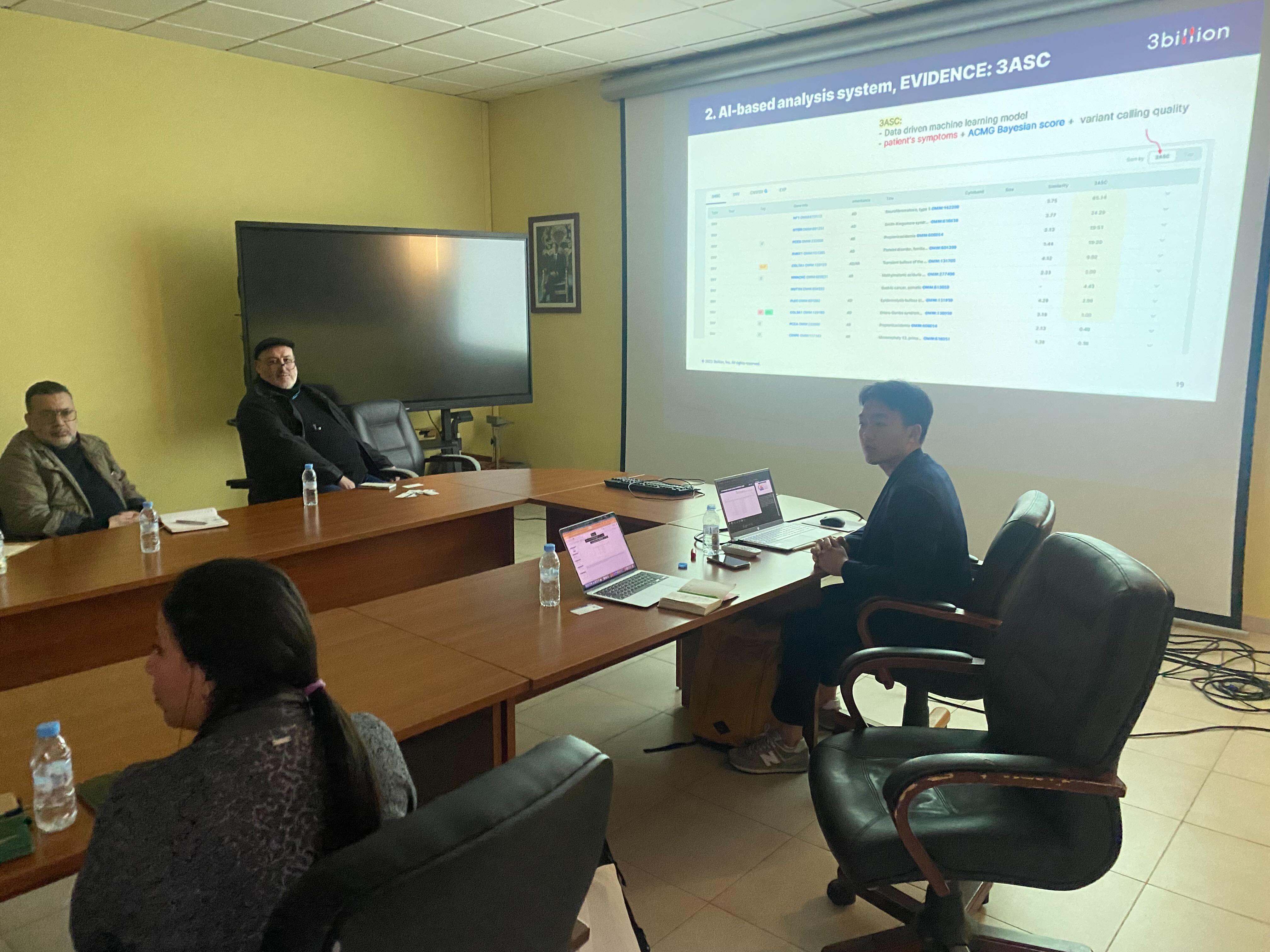 From Dec. 13-16, 3billion met many clients locally in Morocco. We presented to eight professors and students from various departments at University Hassan2 Hospital and discussed future research projects. We discussed the introduction of Gebra, a software service, with local distributor AskYourOmics. We promised to collaborate with the Moroccan Society of Pediatric Endocrinology. We will also create great opportunities with doctors across Morocco.