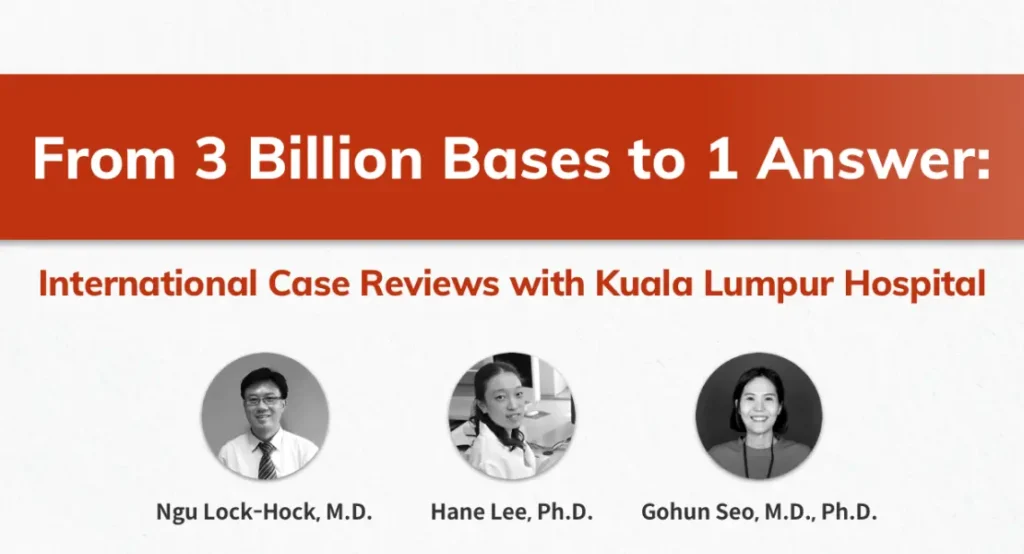 Are you curious how rare disease patients are diagnosed using genetic tests? Dr. Ngu Lock-Hock, Head of Medical Genetics at Kuala Lumpur Hospital, will be joining us as our guest speaker to share rare disease cases. You will hear how 3billion’s technology was applied and played a key role in diagnosis.