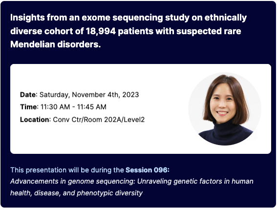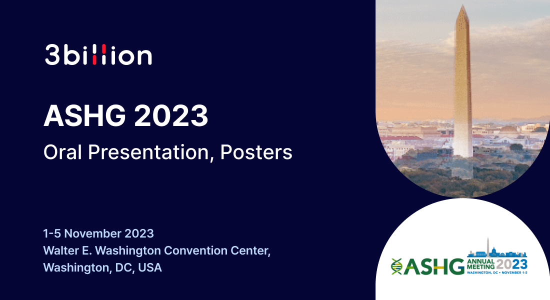 3billion is participating in the American Society of Human Genetics (ASHG) Annual Conference 2023 in Washington, DC, USA, for five days from Nov. 1 to 5, presenting five studies.